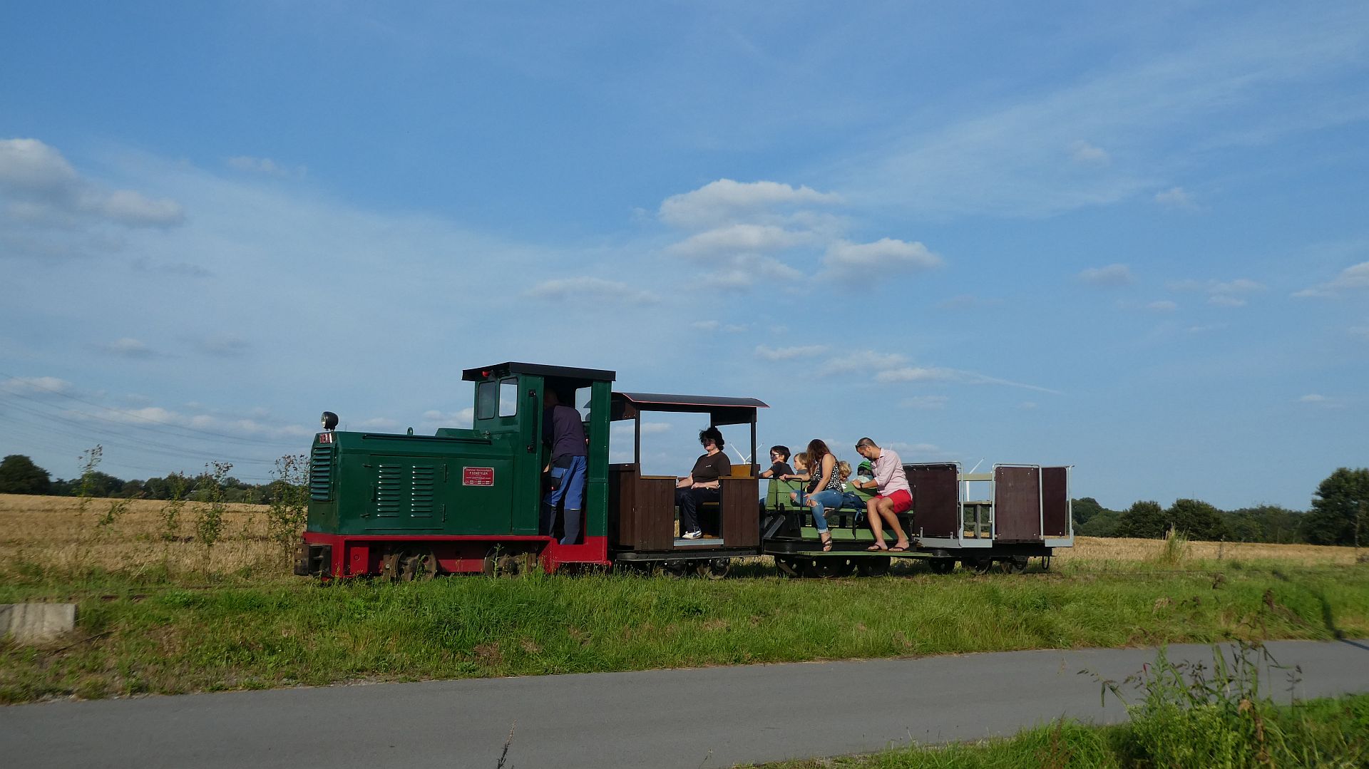 Die vom 7.7. bis 18.8. durchgeführten Ferienfahrtage nach vorheriger Anmeldung waren ein grosser Erfolg. Unser Hauptaugenmerk liegt jetzt bei der Fertigstellung der Lok für die Historischen Feldbahn Hofgut Serrig (bei Saarburg) und der Erledigung von Restarbeiten an unserer Rolli-Lore für mobilitätseingeschränkte Fahrgäste. Grundsätzlich muss die Strecke in Richtung Lippeufer weitergebaut werden. Ferner erfordert gerade dieses Jahr der Vegetationsrückschnitt an den Gleisen viel Arbeit. Am 24.08. hatten wir Besuch von der Entwicklungsagentur Wirtschaft/Tourismus des Kreises Wesel und der Stabsstelle Wirtschaftsförderung der Gemeinde Schermbeck, die Filmaufnahmen während einer Streckenfahrt machten.